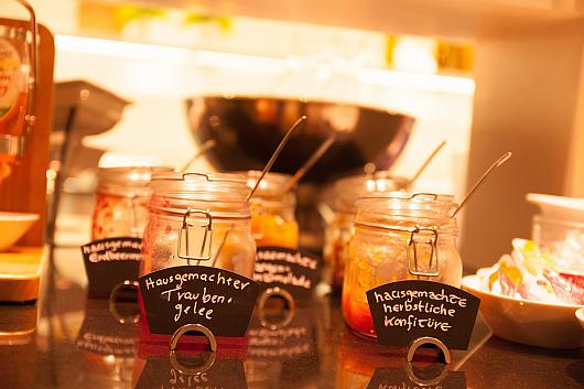 Beginnen Sie Ihren Tag mit unserem köstlichen Frühstücksbuffet, welches sich durch unsere hausgemachten Spezialitäten und regionalen Köstlichkeiten auszeichnet. Selbstgemachte Marmeladen, Gelees, Chutneys und Aufstriche sowie eine reichhaltige saisonale Auswahl an verschiedensten Speisen warten auf Sie.