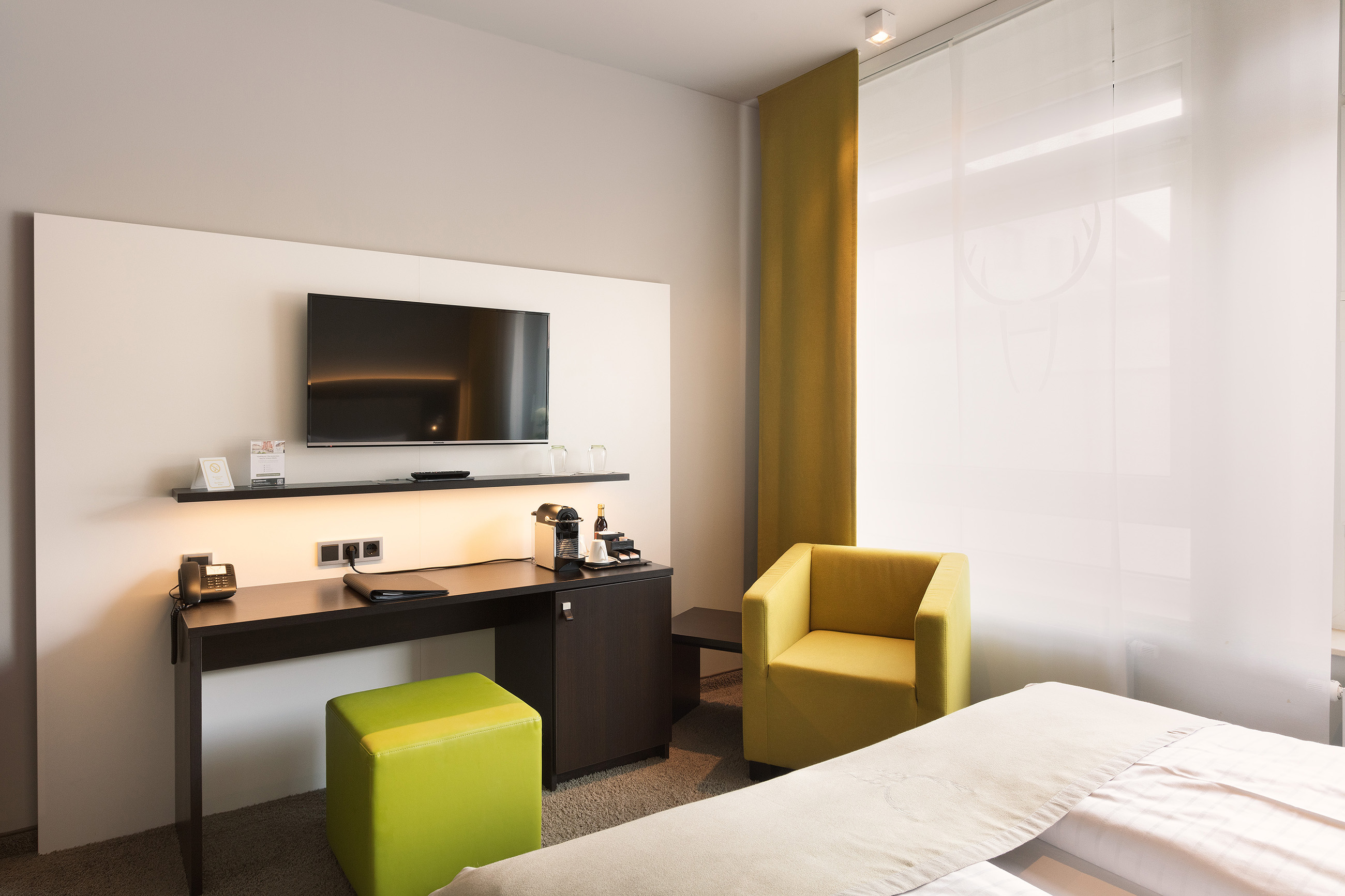 Die 20 bis 25 m² großen Superior-Zimmer eignen sich besonders für unsere geschäftsreisenden Gäste. Sie bieten genug Raum, um in Ruhe zu arbeiten und nach getaner Arbeit die Füße hochzulegen. In jedem Zimmer steht Ihnen kostenfreies WLAN sowie eine Kaffeemaschine zur Kaffee- & Teezubereitung zur Verfügung.